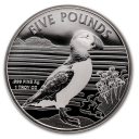 Die Vorderseite der Münze zeigt das Bild eines Puffins, der auf einem Felsen steht und eine Darstellung des Ozeans im Hintergrund. Ebenso den Nennwert, Reinheit und Gewicht der Münze.