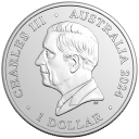 Der Große Tümmler oder Bottlenose Doplhin wurde als Anlagemünze von der Royal Australien Mint geprägt. Die Vorderseite zeigt dabei einen Delphin beim Sprung aus dem Wasser. Der Bottlenose Dolphin ist wohl die bekannteste aller Delphinarten und in allen Ozeanen der Welt verbreitet. Am Horizont erkennt man die untergehende Sonne und als Inschrift Bottlenose Dolphin, die Gewichtsangabe und den Feinheitgehalt der Münze. Die Rückseite zeigt das Porträit von Königin Elisabeth.