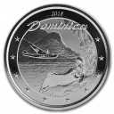 Die Vorderseite zeigt ein Flugzeug und eine Frau auf der Insel liegend. Die Rückseite zeigt Queen Elisabeth als Staatsoberhaupt, die Umschrift Eastern Caribean Centralbank, den Nennwert, den Feingehalt und das Feingewicht.