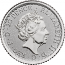 2013 zeigt eine stehende Britannia und den Schriftzug One Ounce Fine Silver Britannia sowie das Prägejahr. Die Rückseits ziert das Porträt von Königin Elisabeth II.