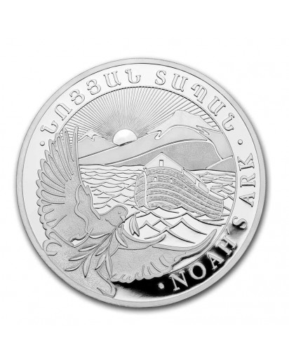 Das Münzbild zeigt einerseits das Staatswappen Armeniens, den Nominalwert und die Angabe des Silbergewichtes. Die Vorderseite zeigt die Arche Noah vor dem Berg Ararat, dem Nationalsymbol Armeniens und einer Friedenstaube.